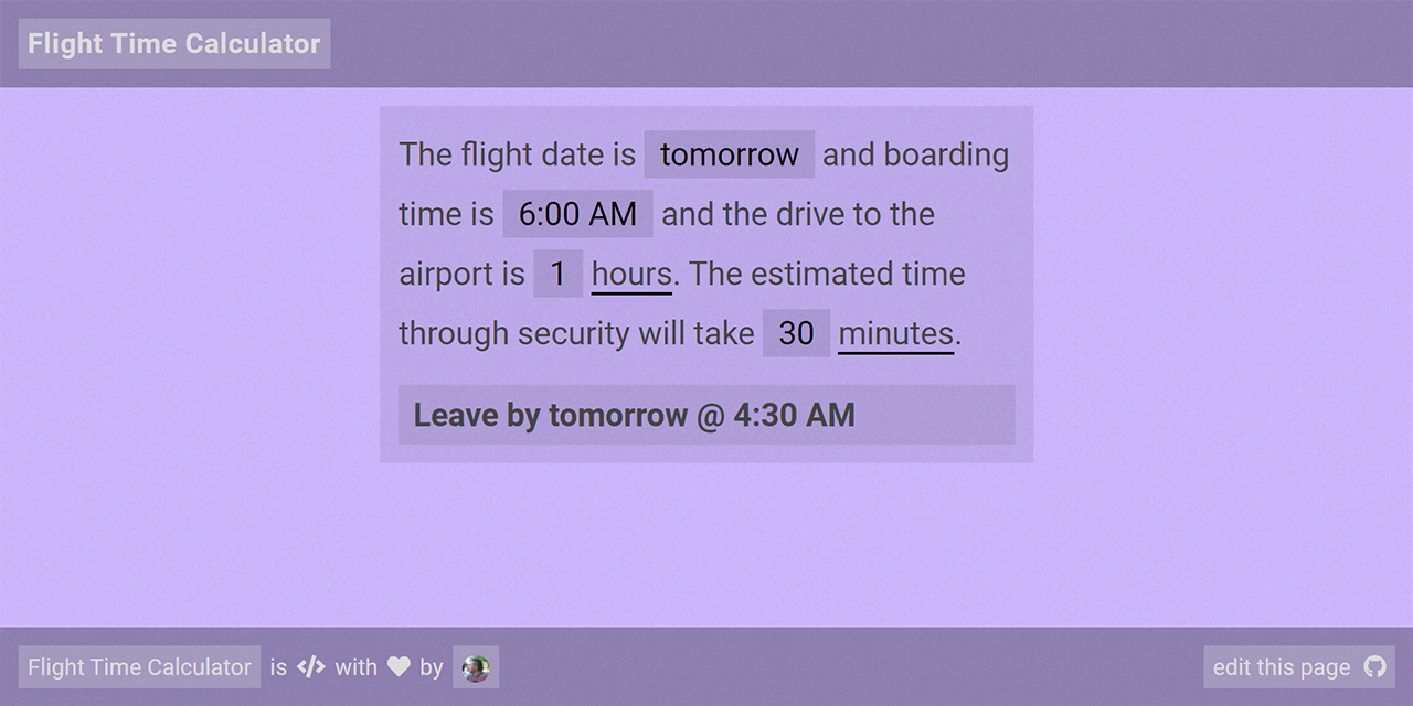 Flight Time Calculator, FS Flight Calculator - Software Informer. Useful tool ... - All pilots must document their.. Flight time calculator, this tool calculates the flight time and distance from airport to airport. Our drone flight time calculator assumes a conservative estimate of 170 w/kg. Simply select the desired airport of departure and destination for your flight on the map. Fill in all the fields. Calculates the duration of a flight from departure and arrival time and the time zones at start and here, those times can be converted to the according time zones and the total time for the flight can.